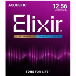 Elixir 11075 80/20 Bronze Light-Medium Acoustic Guitar String Pack with POLYWEB Technology Gauge 12-56